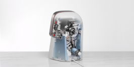 The design is friendly with a strong presence emphasizing it's uniqueness on the market and concealing it's incredible power. Quality materials like the high grade aluminum door are left exposed and the entire interface is condensed in to a single button in its center. Behind the button are three hidden LEDs that animate when juice is dispensed.
